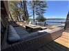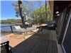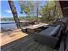 Waterfront has a bonfire pit area beside the bunkhouse, complete with an outdoor smart tv with streaming channels available. Muskoka style chairs, a gazebo with a dinning area/ sitting set. Large dock extends out on the water with lounge chairs at the end of the dock.