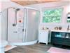 The large 3 piece bathroom is in a separate bunkie, just 2 steps out the backdoor of the kitchen, allowing total privacy while using the bathroom.