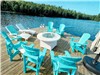 * 24' x 24' private floating dock with Adirondack chairs, loungers, fire table and umbrella