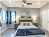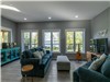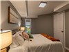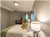 Lower Level: Two spacious bedrooms, each with queen-size beds (one with a walk-in closet) and the other with stunning lake view. Stylish and grand bathroom with a shower/tub combo and double sink. Second living area with TV, electric fireplace, and expansive windows showcasing scenic lake views. Walk-out access to the outdoors, bringing you right to the lakeside setting.