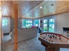 Venturing downstairs, you'll find another comfortable bedroom and a bathroom with a shower. The family room beckons with its gas stove for heating, creating a cozy atmosphere for relaxation and entertainment. Engage in friendly competitions around the bumper pool table, creating memorable moments with loved ones.