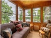 The main level of Pappy Gill Pointe boasts an impressive kitchen, equipped with a double-sized refrigerator and modern appliances, perfect for preparing delicious meals and hosting gatherings. The main floor living room is designed for relaxation and socializing, while the fireplace media room, complete with a roll-top desk, offers a cozy ambiance for work or quiet reflection. The screened Muskoka room, off the kitchen, provides a serene space to unwind and enjoy the breathtaking views of Gloucester Pool.