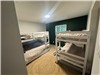 The three bedrooms are set up as follows: two queen bedrooms each with memory foam mattresses, and a third bunk room with a full-over-full bunk bed and a twin trundle — all with memory foam mattresses as well. Both bathrooms are full, with walk-in showers.