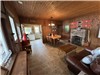 On this one floor bungalow style cottage, the family room vibe has a true old-fashioned feel featuring warm wooden details, vintage décor, and a simple, comfortable living space full of character. A large couch, coffee table, and a shelving unit with many games, puzzles, and books encourage old-school fun and feel-good memories just waiting to happen.