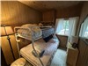 One bedroom has a queen size bed with warm pine ambiance and a large window. The second bedroom has a single over double bunk bed set with large window, and the third bedroom has a single over single bunk bed set.