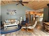 Lots of comfortable furniture/seating in the huge "great room", a games table and big TV. The screened indoor/outdoor room (with retractable vinyl windows) with deep seating provides extra living space and respite from evening mosquitoes or a rainy day. Each bedroom has comfortable queen size bed, dresser and ceiling fan; and there is a full bathroom with shower, plus a 2pc bathroom. Lots of closet space. Central heat keeps it cozy in the cooler weather while central air conditioning, the lake breeze and ceiling fans keep it cool in the heat of summer.
