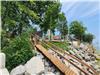 The property sits approximately 15 feet above the shoreline, and some areas are steep. Access to the water is via a ramp, which can be steep for some and slippery when wet. We recommend moving carefully and wearing water shoes when entering the lake.