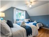 Upstairs offers a two bedroom, one bathroom layout. In the first bedroom there is a double bed, a twin bed and an independent workplace. There is a 3pc bathroom with a stand up shower, with the fourth bedroom beside it. This bedroom is perfect for the kiddos- with a four bed layout. The bunk bed has a double bed, single bed on top, and pull out single trundle. Across from there is a single bed, and lots of room to play during those rainy days!