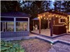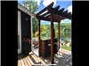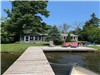 Professionally landscaped waterfront with armour stone, interlock patio, flower gardens, and a pergola-covered bar area