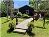 Exterior includes a raised pathway from the road/driveway to the side entrance and the riverside front of the cottage. Two steps up and two steps from the pathway into the cottage. One additional step from the mudroom into the living area. Decking and stone landscaping include 1 to 3 steps to get around outside.