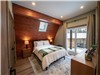 À l'étage se trouve la suite principale avec lit queen, salle de bain privée avec douche vitrée et petit balcon donnant sur la forêt.